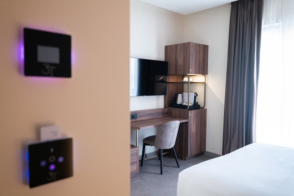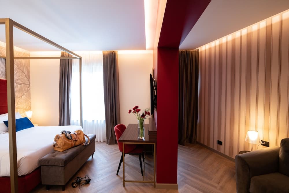 Rilassati in una delle 30 camere con aria condizionata della struttura, completa di minibar e macchina per caffè espresso. Riposati su un comodo letto con materasso memory foam e biancheria da letto di alta qualità. La Smart TV da 50 pollici con canali in digitale è l'ideale per concedersi un po' di svago, mentre il Wi-Fi gratuito ti permette di restare in contatto con il mondo. I bagni dispongono di vasca o doccia, asciugacapelli e pantofole.